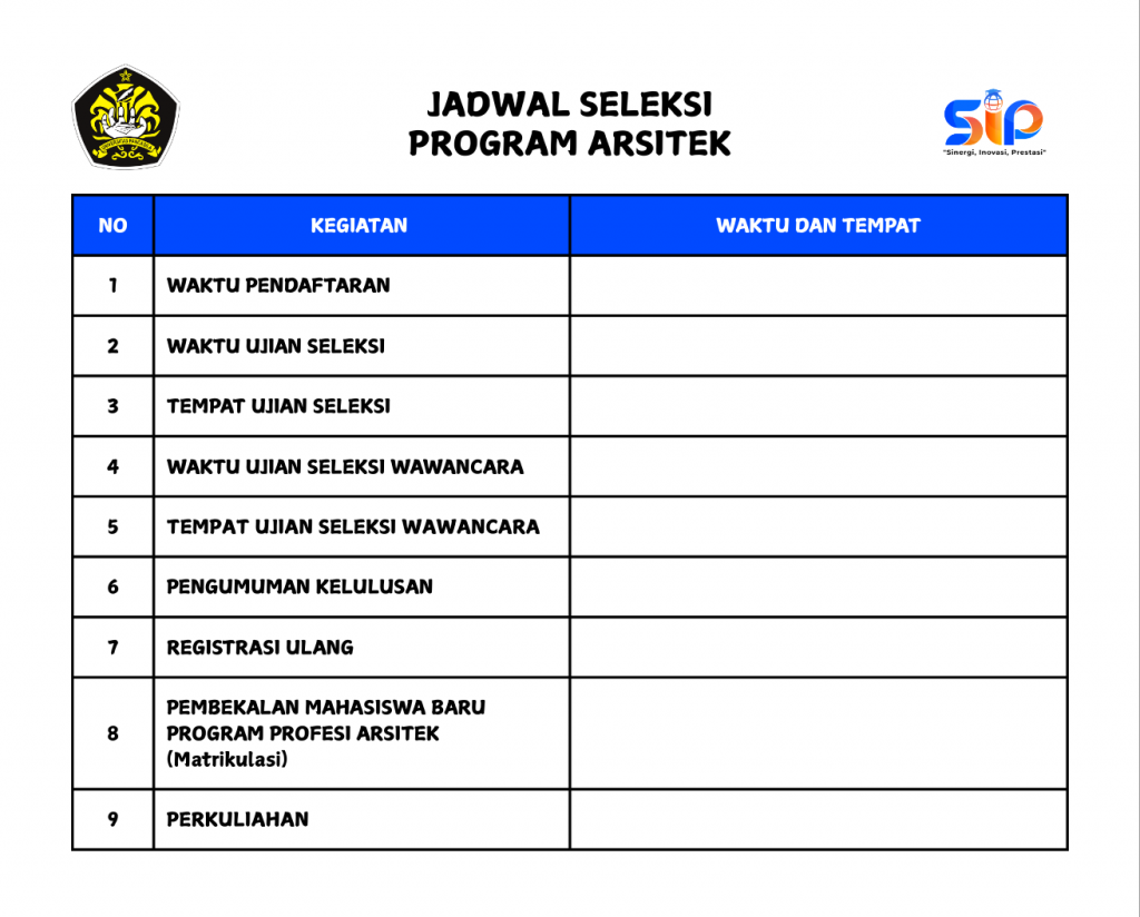 Registrasi Ulang Ke Bagian Akademik bagi yang diterima Program Arsitek,