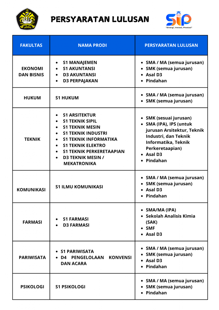 - Memenuhi persyaratan kesehatan yang ditetapkan oleh program studi masing-masing.